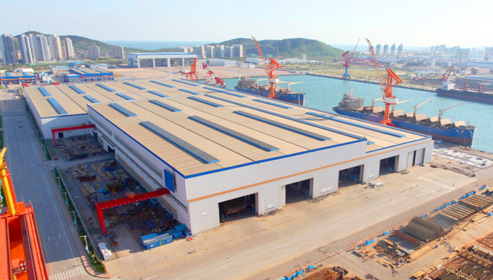 主尺度:長690m,寬240m,高48m,室內面積125190?O,室外面積40410?O。含鋼材存放、預處理、理料、下料加工、部件裝焊、分段裝焊六個功能區(qū)。