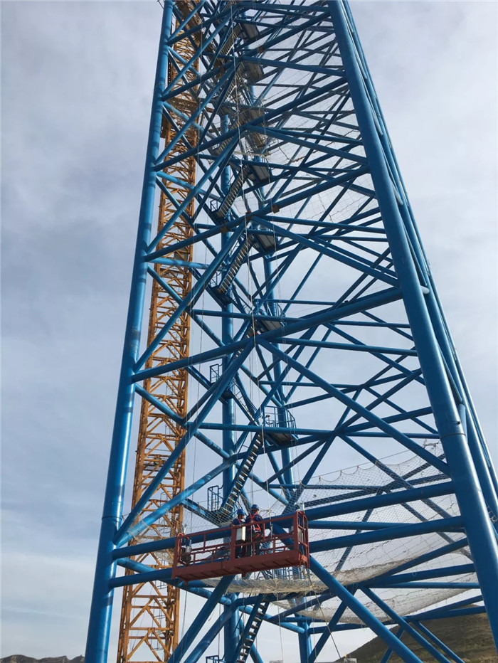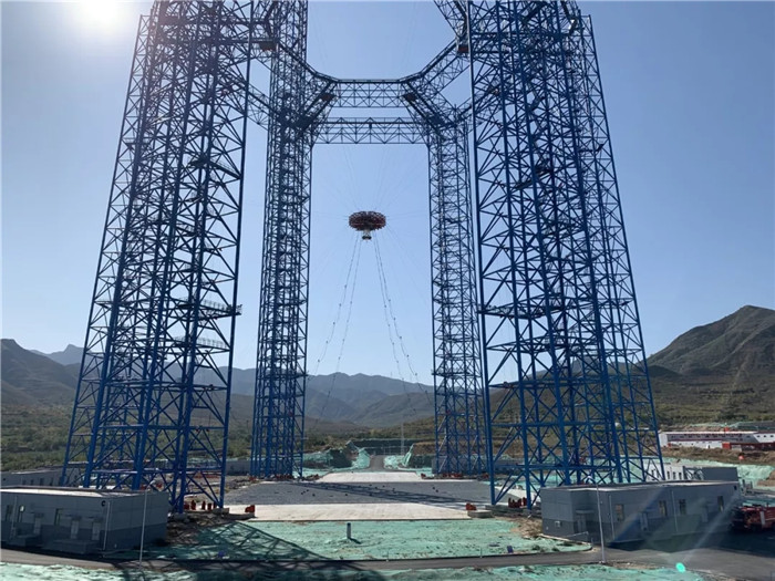 2019年6月,試驗場6個鋼結(jié)構(gòu)塔架拔地而起,與之相匹配的共18套絞車設(shè)備、36根鋼絲和700余組(高空500余組、近地200余組)導向輪,以及相關(guān)配套電纜、電氣設(shè)備設(shè)施的安裝工作接近尾聲,待“隨動盤”運到,便可以開始進行總裝和調(diào)試工作。