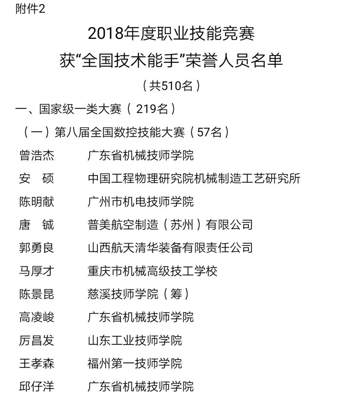 日前,人社部決定授予在第45屆世界技能大賽全國選拔賽和在2018年中國技能大賽中取得優(yōu)異成績的選手“全國技術(shù)能手”榮譽(yù),并頒發(fā)獎?wù)隆ⅹ勁坪蜆s譽(yù)證書。