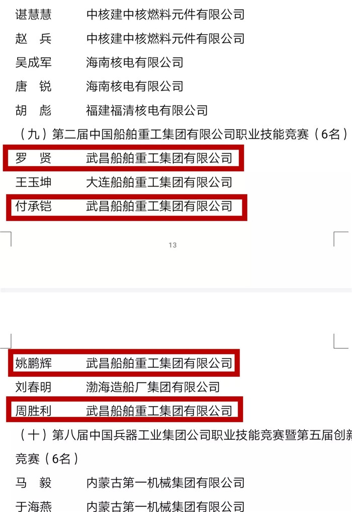 2018中國技能大賽?C?C第二屆“船舶杯”中船重工職業(yè)技能競賽過程中,武船集團(tuán)下屬單位模塊公司姚鵬輝、軍船公司羅賢、北船重工周勝利、船舶公司付承鎧等參賽選手認(rèn)真?zhèn)淇紤?yīng)考,按照比賽規(guī)則出色完成了全部比賽科目,從中船重工16支代表隊(duì)的81名選手中脫穎而出,姚鵬輝和羅賢分別斬獲船體裝配工和船舶電焊工比賽第一名,周勝利、付承鎧分別獲得船體裝配工和船舶電焊工比賽第三名,展現(xiàn)了高超的船舶建造技藝。按照《中華技能大獎和全國技術(shù)能手評選表彰管理辦法》和《人力資源和社會保障部關(guān)于組織開展2018年中國技能大賽的通知》要求,在2018中國技能大賽?C?C第二屆“船舶杯”中船重工職業(yè)技能競賽(國家級二類競賽)決賽中獲得前3名成績的武船職工姚鵬輝、羅賢、周勝利、付承鎧被人社部授予“全國技術(shù)能手”榮譽(yù)稱號。