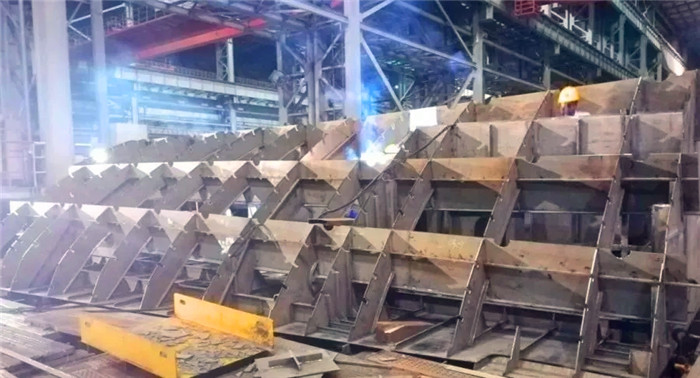 該首制分段為單殼體底部分段,結構形式與往期產(chǎn)品相比變化較大,且工藝復雜。另外,本次施工屬異地作戰(zhàn),無論在資源調配還是與相關方的溝通協(xié)調等方面都存在不小的難度,而這些都是擺在項目部面前的巨大考驗。為應對上述工作難題,項目部高度重視,決心不惜一切代價也要按期、保質完成生產(chǎn)任務。在項目部總指揮凌偉、副總指揮李強的統(tǒng)一領導下,項目部迅速加大了人力、物力及各項設備設施的投入力度,通過不斷優(yōu)化細化生產(chǎn)組織,制定科學有效的日生產(chǎn)計劃并狠抓計劃的落實,不斷加強對現(xiàn)場的溝通和協(xié)調等舉措,有效解決了工作中存在的諸多困難,打通了生產(chǎn)瓶頸,達到了“日事日畢、日清日高”的效果。