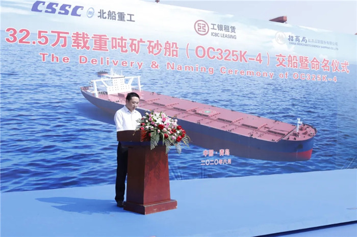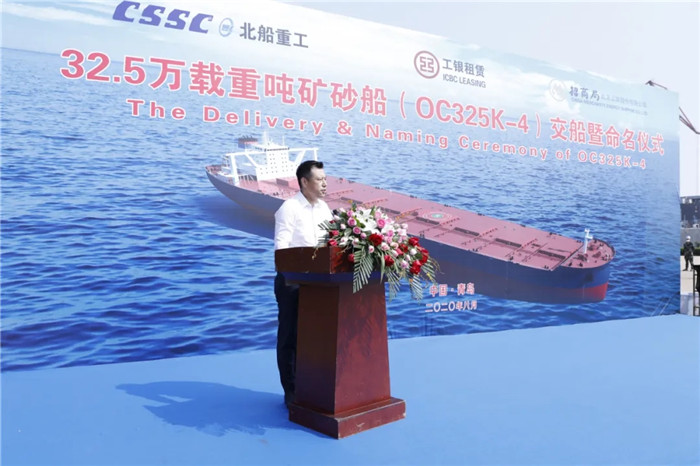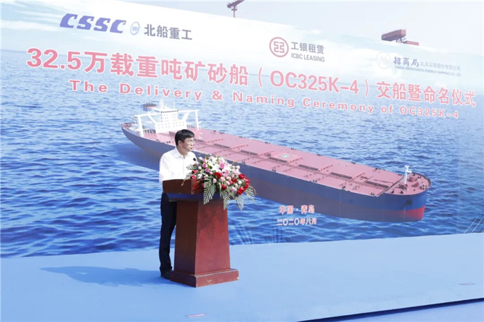 上午9:00,武船集團(tuán)北船重工為工銀租賃和招商輪船建造的第四艘32.5萬噸礦砂船“ORE CHONGQING”輪命名暨交船儀式在3號碼頭舉行,這是各方在黨中央的正確領(lǐng)導(dǎo)下,抗擊疫情取得的重要成果。工銀租賃航運(yùn)金融事業(yè)部副主管賈浩、北船重工總經(jīng)理谷克超代表雙方簽署了交船議定書。