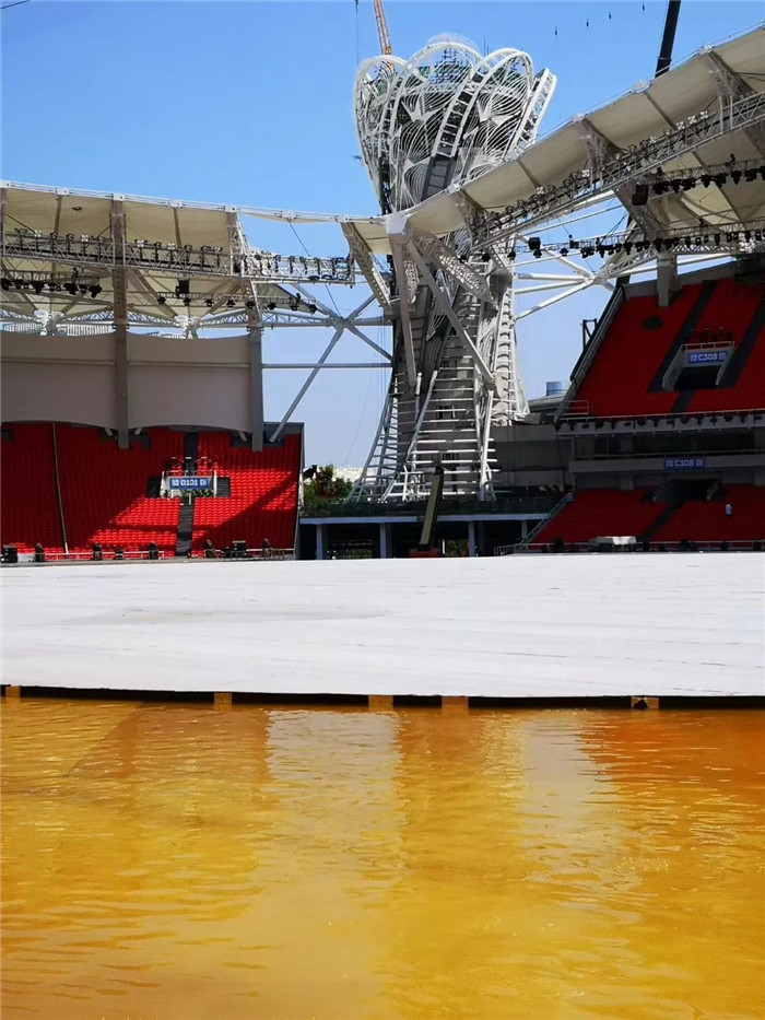 作為開(kāi)幕式舞臺(tái)上“和平鴿圖案”和“母親河”局部的獨(dú)特表現(xiàn)載體,水區(qū)的建造過(guò)程更加艱辛。