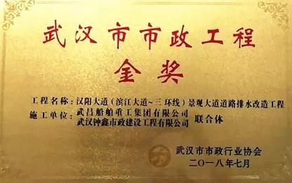 2018年8月,武漢市市政工程金獎評選工作如期開展,武船集團交通研究院參與建設的漢陽大道(濱江大道~三環(huán)線)景觀大道工程被評為武漢市市政工程金獎。