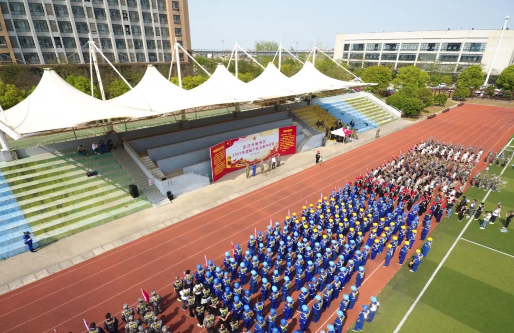 4月10日,風(fēng)和日麗,軍旗飄揚,武漢市新洲區(qū)基干民兵點驗大會在中國船舶集團(tuán)武昌造船體育場隆重舉行。新洲區(qū)委常委、區(qū)人武部政委陳勇、區(qū)人武部部長馮俊明、區(qū)人民政府辦黨組成員高擁軍、相關(guān)街鎮(zhèn)及高校武裝部長、武昌造船安保部有關(guān)負(fù)責(zé)人出席本次點驗大會。同時參加點驗大會的還有雙柳片區(qū)基干民兵 670名,其中武昌造船基干民兵 200 名。