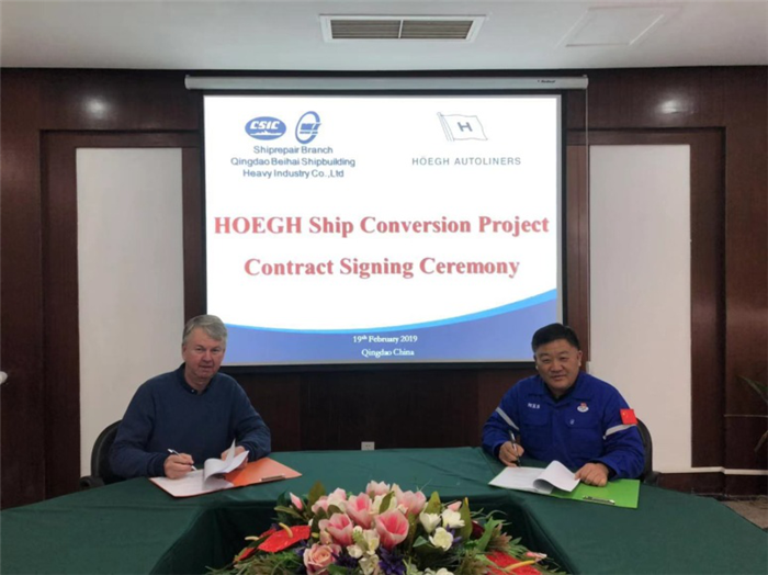 2月19日,武船集團北船重工副總經(jīng)理、修船分廠廠長劉玉東和挪威禮諾航運公司新造和改裝負責人JAN RUNE MORKEN先生在修船分廠簽署HOEGH 2019年改裝合同。這是北船重工今年首次簽署的改裝工程新訂單,為今年修船工作取得開門紅。