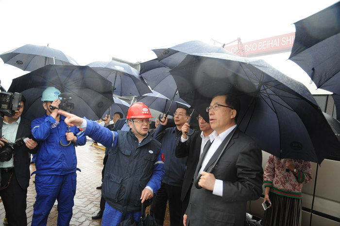 5月11日下午,山東省委常委、青島市委書記張江汀,市委常委、副市長(zhǎng)王魯明,市委常委、西海岸新區(qū)黨工委書記、區(qū)委書記王建祥等領(lǐng)導(dǎo)一行到武船集團(tuán)北船重工調(diào)研企業(yè)科技創(chuàng)新、發(fā)展海洋經(jīng)濟(jì)等工作。